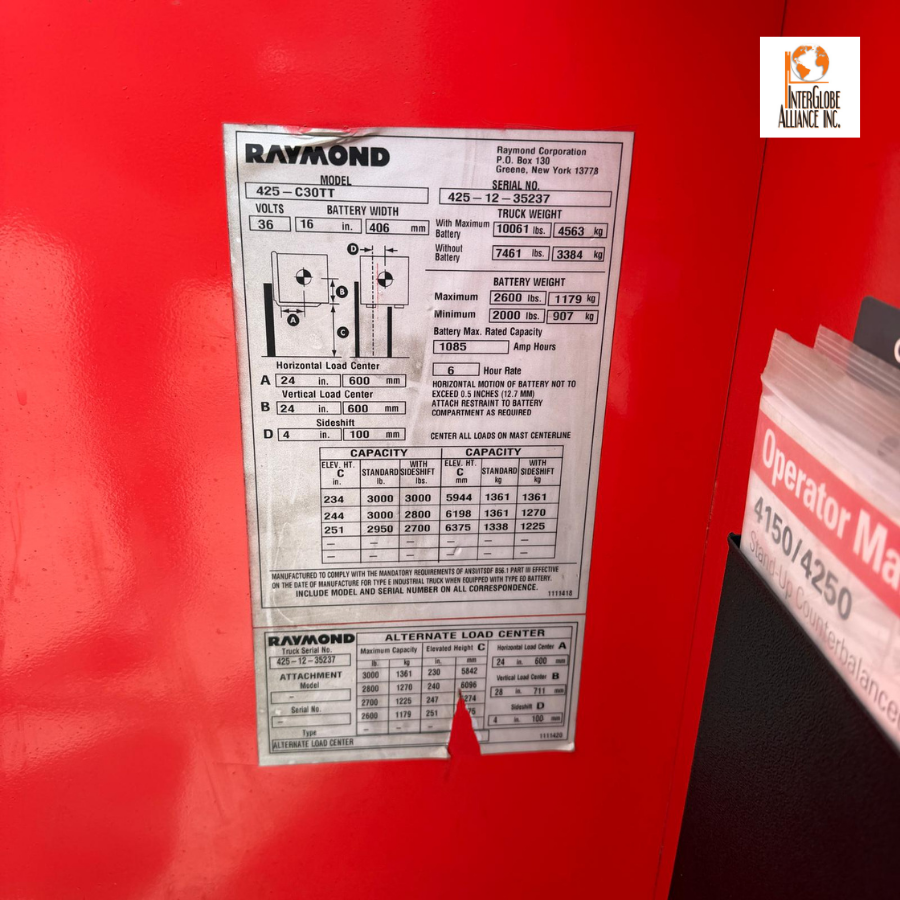 Whether you’re searching for a used stacker in the GTA, a used electric stacker in Ontario, or a dependable used Raymond stacker at a competitive price — the 2015 Raymond 425-C30TT delivers proven warehouse performance backed by the trusted Raymond name.