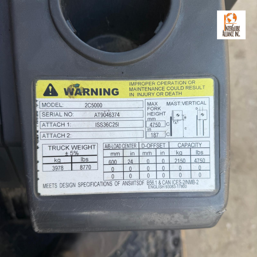 Whether you’re searching for a used forklift in the GTA, a used propane forklift in Ontario, or a dependable used CAT / Caterpillar forklift at a competitive price — the 2018 CAT 2C5000 delivers proven performance backed by the trusted CAT / Caterpillar name.
